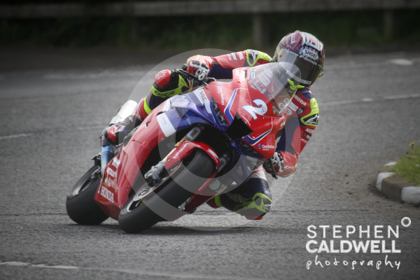 John claimed a brilliant 7th overall in the 2024 NW200 Superbike Race 1. This photo is of John through Ballysally (the magic roundabout).